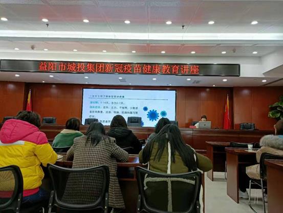 1日26日下午,益阳市城投集团开展新冠疫苗健康教育讲座,邀请市第一中医院国医馆副主任刘莉芬医生做接种新冠肺炎疫苗教育讲座,全公司干职工参与学习。