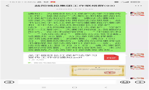 近日,为贯彻习近平总书记关于长江保护和长江经济带发展的重要讲话指示精神,加强《长江保护法》的学习宣传教育,益阳市城投集团多措并举开展《长江保护法》普法宣传活动。通过电子屏幕宣传、发放《长江保护法》学习宣传册、答题知识竞赛、中心组学习会、社交媒体等多种方式广泛宣传《中华人民共和国长江保护法》,形成全社会知法、懂法、守法的良好氛围。