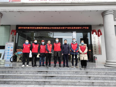 当天下午,我司党委委员卜小兵带队,组织6名党员同志到对口联系的资阳区大码头街道新兴街社区开展冰雪天气防冻保暖、安全出行、防火用电安全及防疫宣传等志愿服务活动,以责任担当“保供应、保畅通、保平安”,在应对雨雪冰冻一线亮身份、见行动、作贡献。