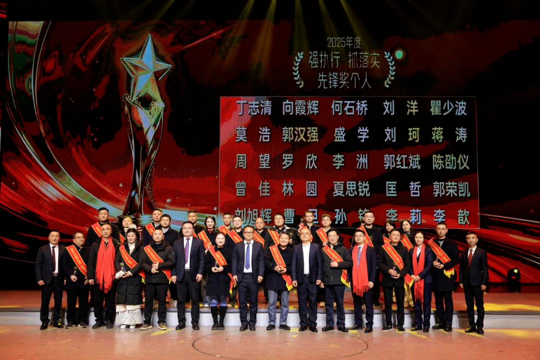 会议表彰了集团公司综合管理部、总工办、益阳市水务投资开发集团有限公司、益阳明清古巷投资开发有限责任公司、湖南省益阳公路桥梁建设有限责任公司5个集体,授予丁志清、向霞辉等25名同志“强执行、抓落实”先锋奖。