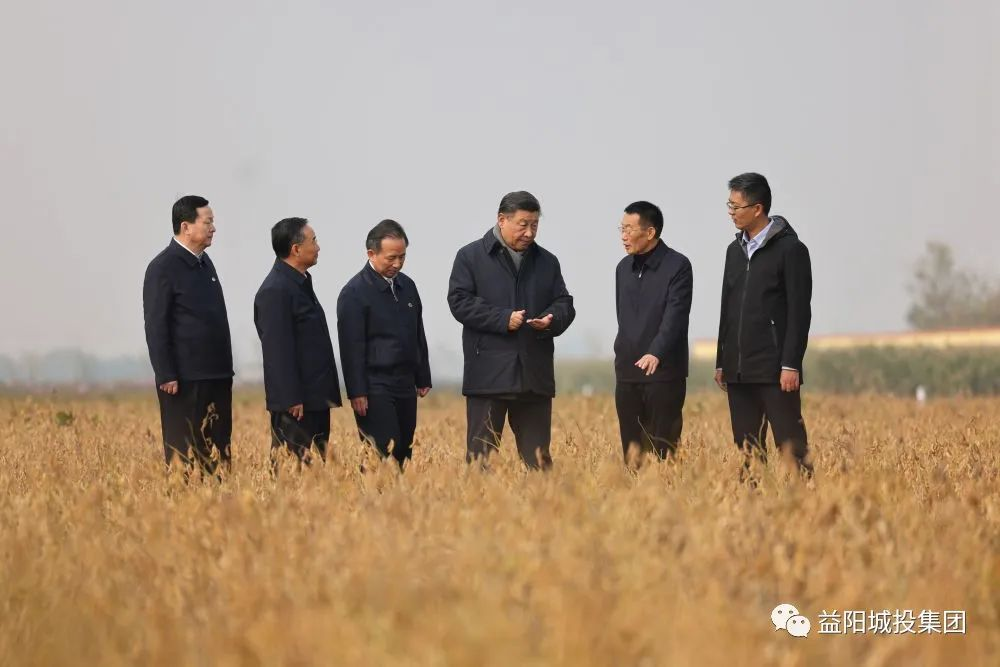 △这是2021年10月21日上午,习近平总书记在山东省东营市黄河三角洲农业高新技术产业示范区考察时,走进田间察看大豆长势。