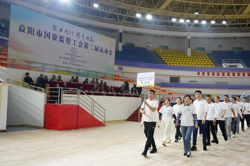 8时38分,运动会在庄严的国歌声中正式拉开帷幕。益阳市城投集团代表队身着统一队服,精神抖擞地步入赛场,队员们以整齐的步伐、昂扬的姿态,展现了城投集团“凝心聚力、勇争一流”的团队精神,赢得了现场观众的阵阵掌声。