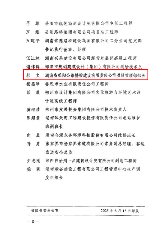 第二届湖南百名“国企工匠”人才宣传名单发布!市城投集团路桥公司郭文同志荣登榜单